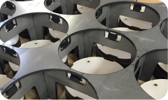 Sharples can provide fully assembled stackers or components for Thermoformers. When manufacturing a stacker, Sharples takes into consideration the geometry of the finished piece and the overall layout. A stacker can be created with as little as a mold file and/or molded sheet. All parts are laser-cut, milled or waterjet cut depending on the material and the application. Sharples offers the ability to create stackers with an array of materials including aluminum, steel, wood and some plastics. In recent years Sharples has developed and manufactured components to work with robotic stackers such as End of Arm Tooling. We work closely with mold makers and industry leading Thermoform Machine Manufactures to understand our customers specifications and requirements.